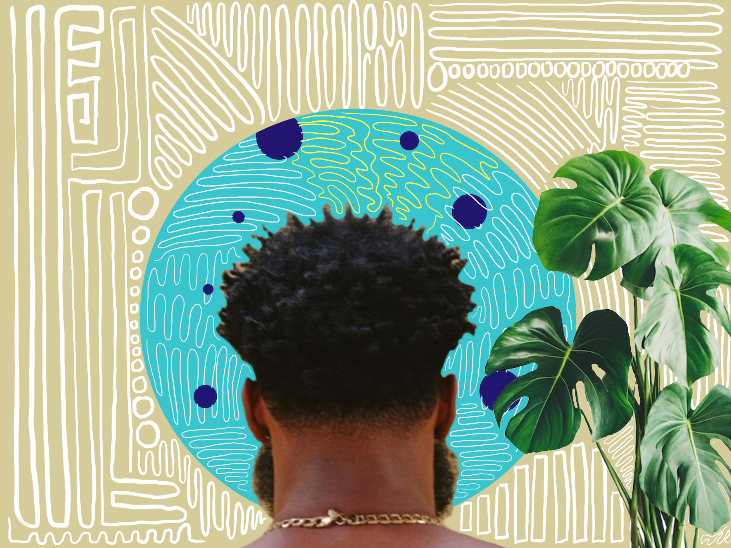 “Doris’ Dandies” uses a beautiful vintage photograph of my great-grandmother, Doris O. Hankins or “Dottie”, whose work as a hair professional became a foundation for my family for generations. I used digital collage and a vibrant palette to draw out the soulful emotion of this moment. The glowing halos and starbursts elevate this act of care from a simple family tradition to a sacred legacy. To me, the colors feel less like a filter and more like a direct expression of the love and reverence in this memory a perfect example of my synesthesia at work.